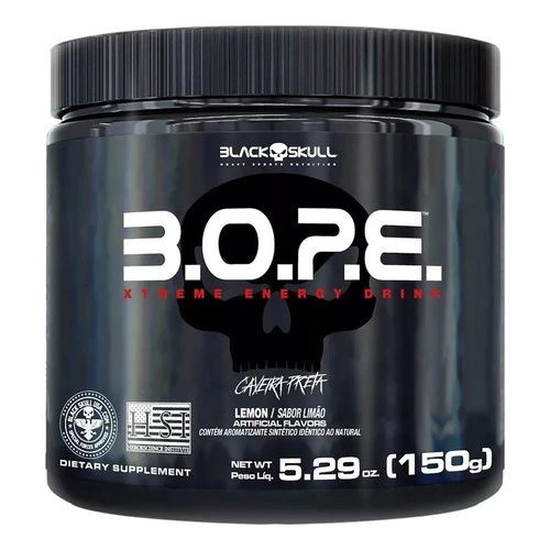 Pré Treino B.O.P.E 150g Black Skull – Cafeína, Arginina, Taurina, Creatina e Maltodextrina O Pré Treino B.O.P.E 150g Black Skull – Cafeína, Arginina, Taurina, Creatina e Maltodextrina é uma solução prática para quem busca aumentar a disposição e melhorar o desempenho durante os treinos. Seu uso diário auxilia na obtenção de energia rápida e maior