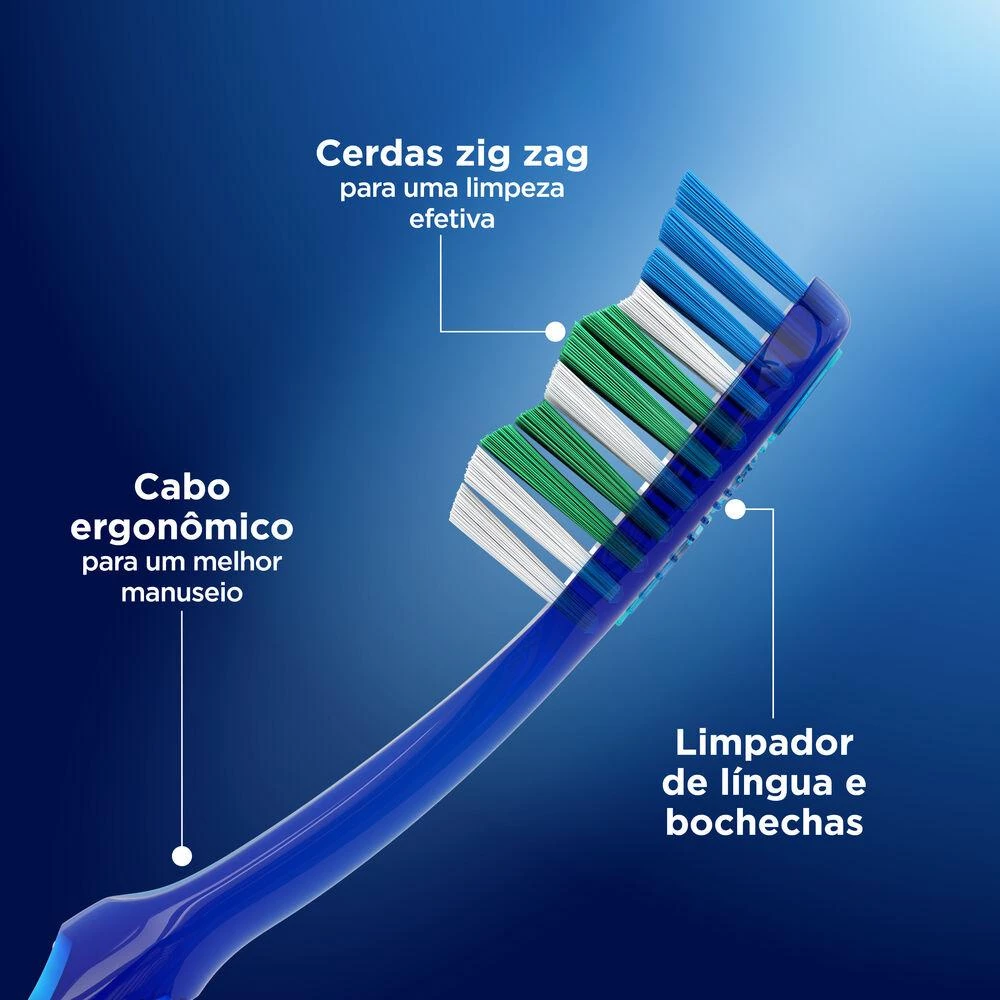 Cuidar dos dentes de sua família agora é tão fácil quanto contar de 1 até 3. Cerdas de pontas arredondadas. Suas cerdas em forma de Z – Onduladas limpam entre os dentes, enquanto as pontas arredondadas são gentis com a gengiva.