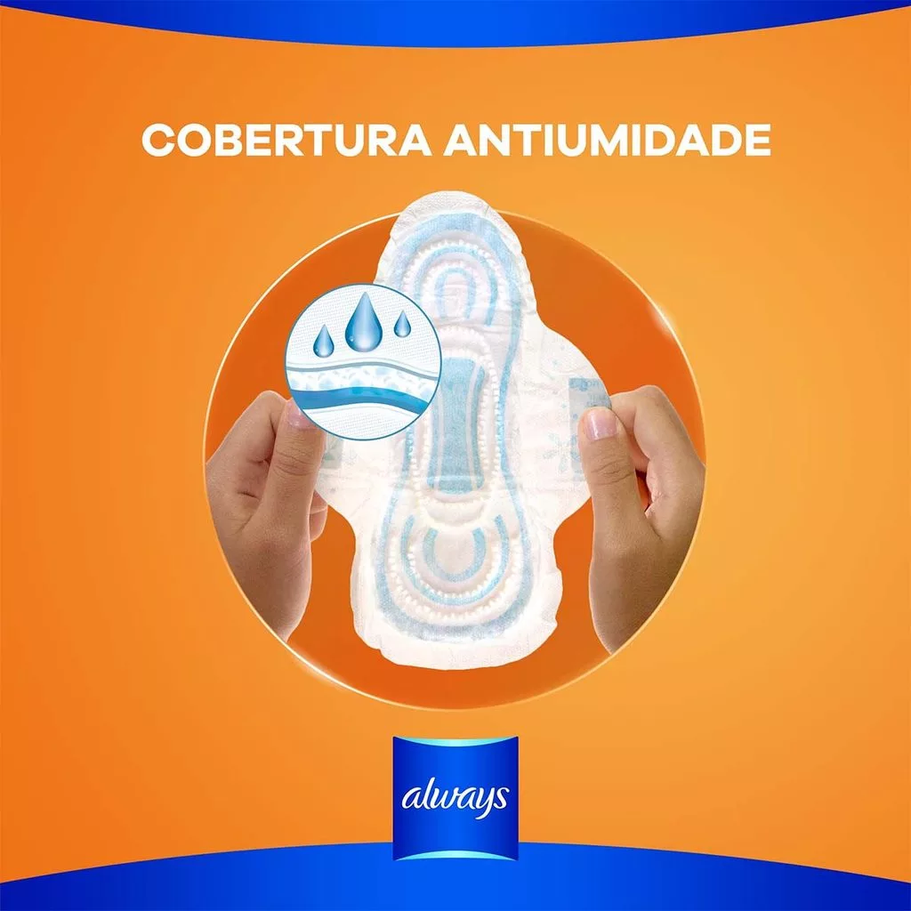 Sinta-se limpa e confortável com o Absorvente Always Suave com Abas, tamanho P de 22cm. Sua cobertura antiumidade absorve seu fluxo e te mantém seca. Formato anatômico que se adapta ao seu corpo. Absorção de um jeito ou de outro.