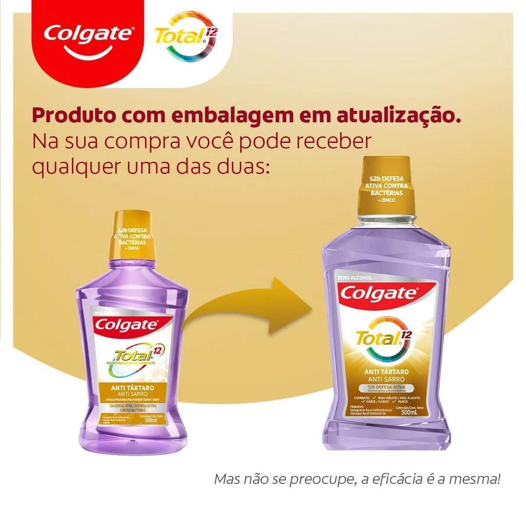 Kit Enxaguante Bucal Colgate Total 12 Anti Tartar 500ml com 3 unidades