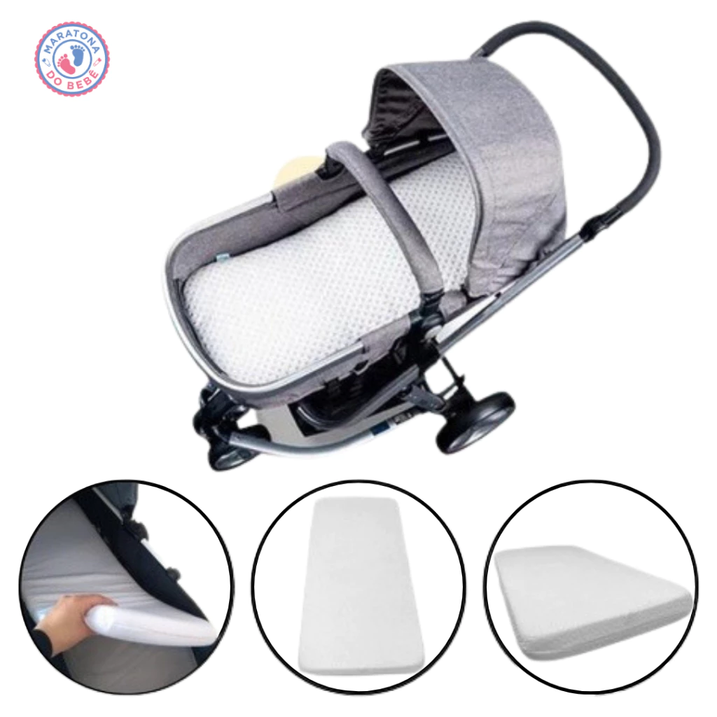 Colchão para carrinho Moises impermeável Branca + capa extra – Menino, Menina e Neutro