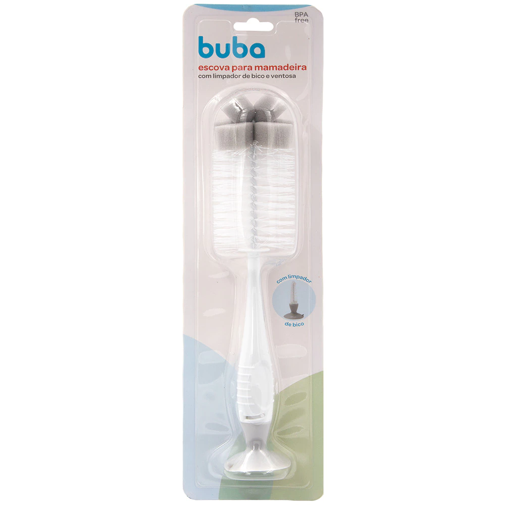Escova Para Lavar Mamadeira Bico e Garrafa Com Esponja Buba Cinza Bebê Limpar Multiuso Kit Limpeza