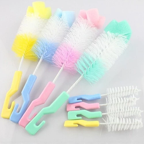Escova Limpeza de Mamadeira Garrafa Copos 360 Graus 3 Em 1 Multifuncional Rotativa