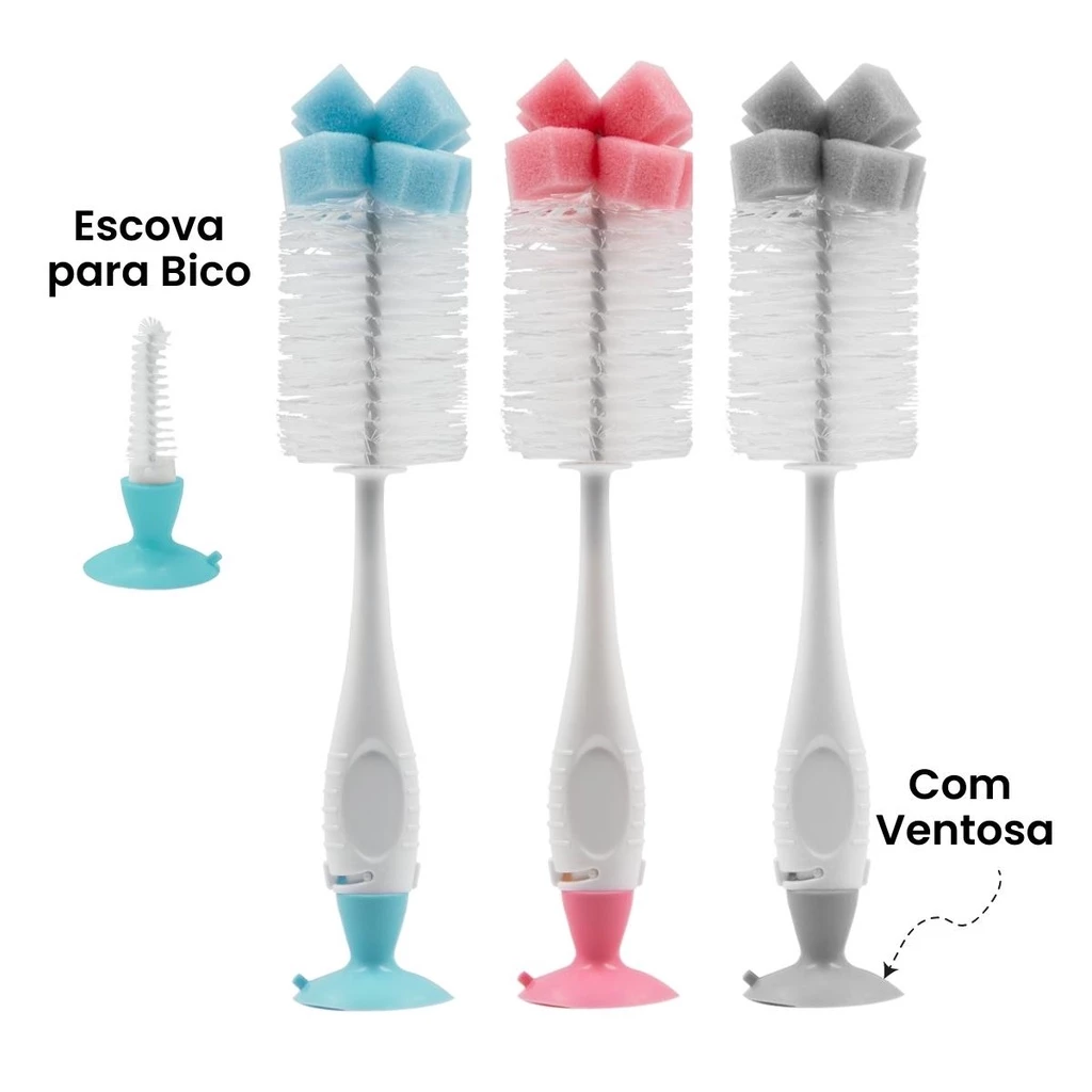 Escova para Lavar Mamadeira e Bico com Ventosa Bebê Limpeza Esponja Buba