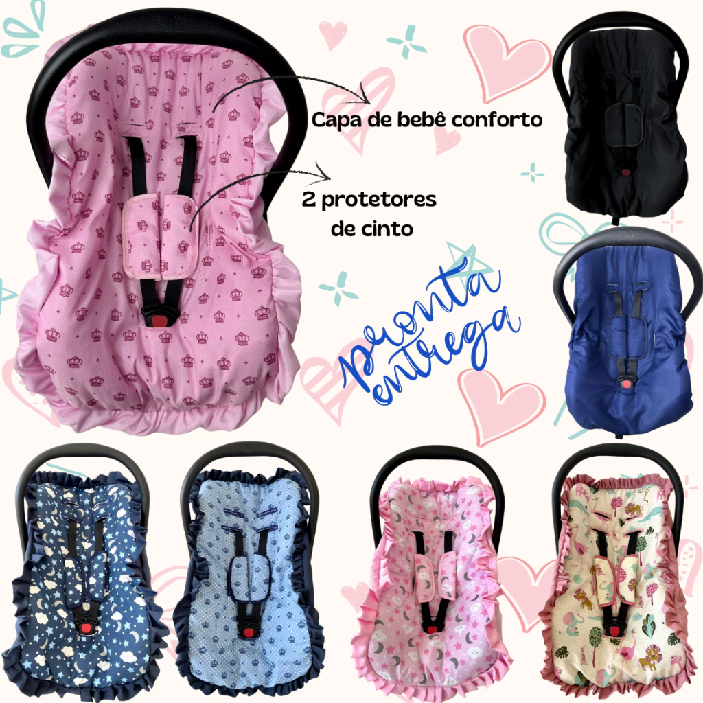 Kit 3 peças para bebê conforto menino menina capa + protetores de cinto tamanho universal até 13 kg