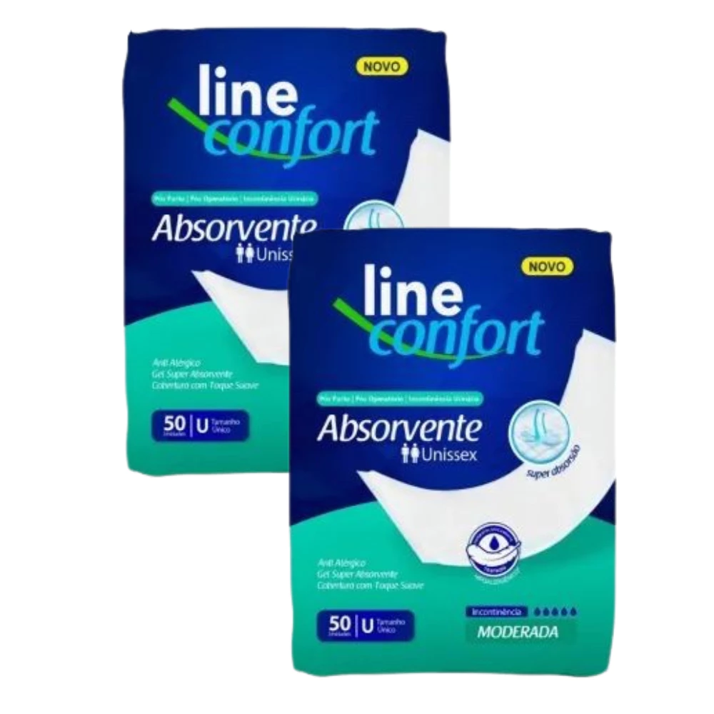 Kit C/2 Absorvente Geriátrico Pós Operatório Pós Parto Line Confort 50 Unidades