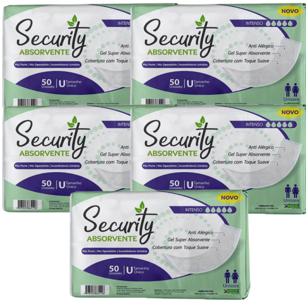 Kit C/5 Absorvente Geriátrico/Pós Parto Operatório/ Incontinência Security Pacote com 50 Unid.