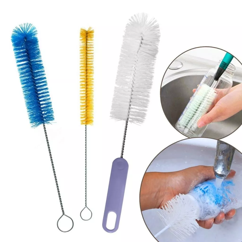 Kit C/ 3 Escova P/ Lavar Garrafas Mamadeira Escova Garrafa 28 + 34 + 38 Cm