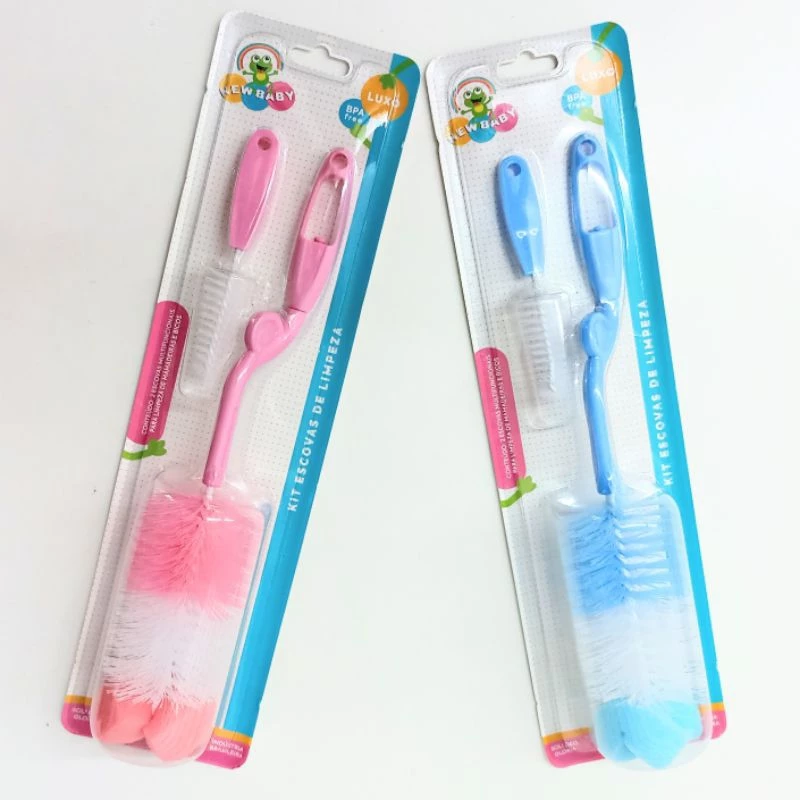 Kit Escovas Para Limpeza De Mamadeira E Bico Rosa Azul (1055)