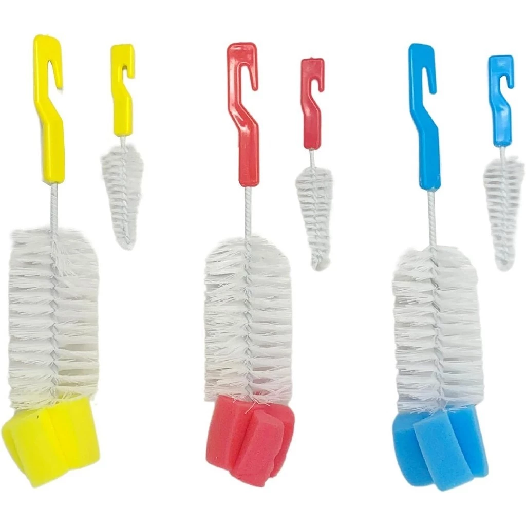 Kit Escova Mamadeira e Bico Buba Com Bucha Esponja Kit Escovas Para Limpeza De Mamadeira E Bico