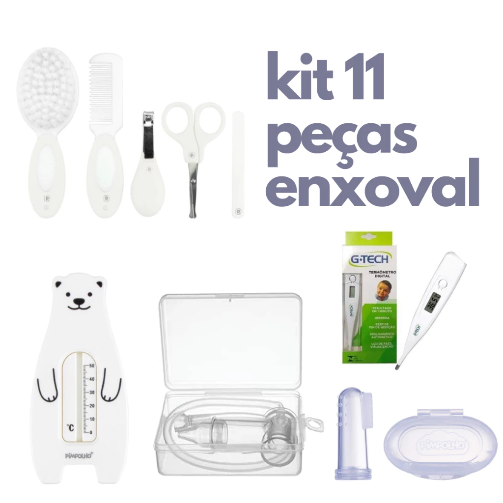 Pimpolho Kit Higiene bebê 11 peças completo Neutro Chá Revelação Essencial