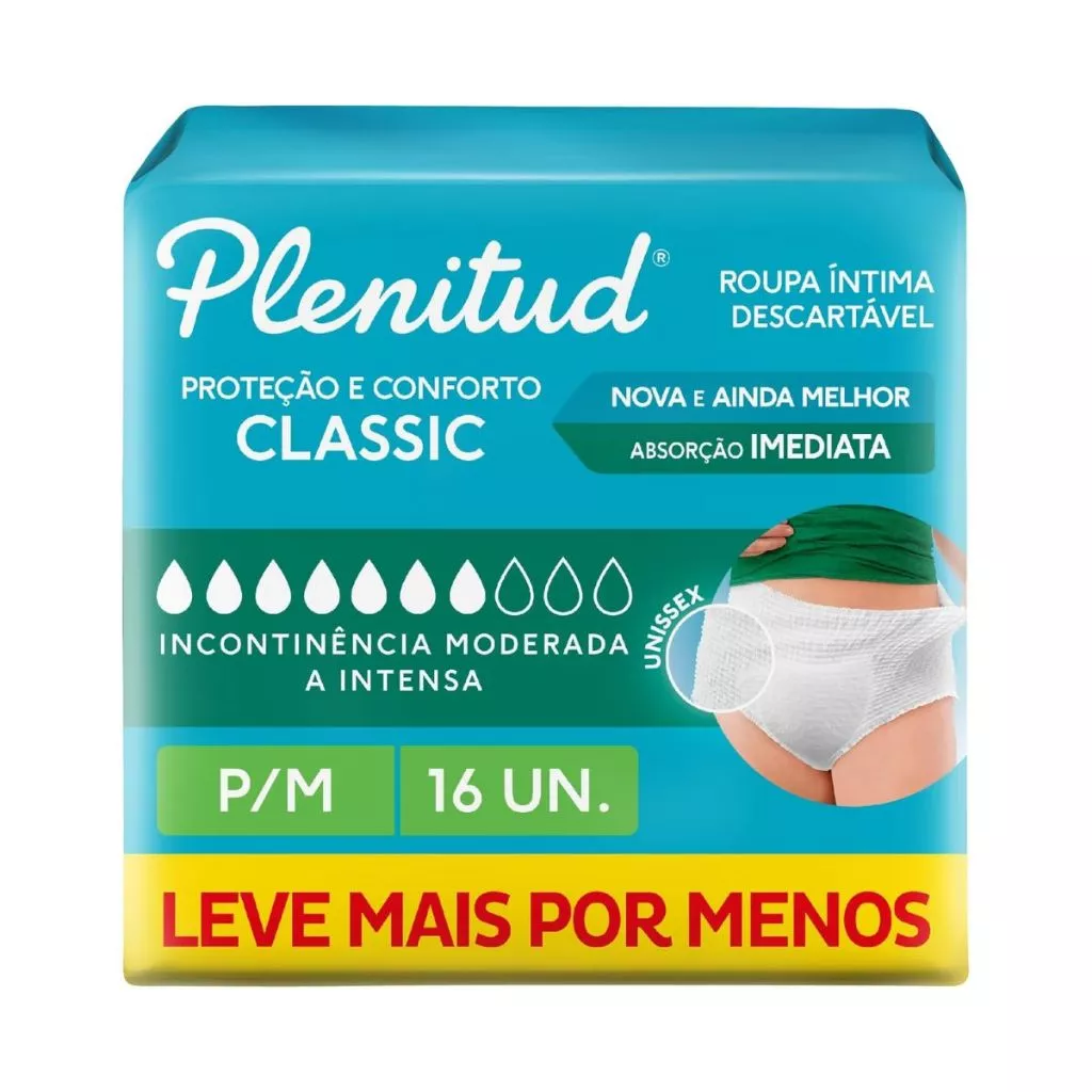 Roupa Íntima Descartável Plenitud Classic P/M com 16 Unidades